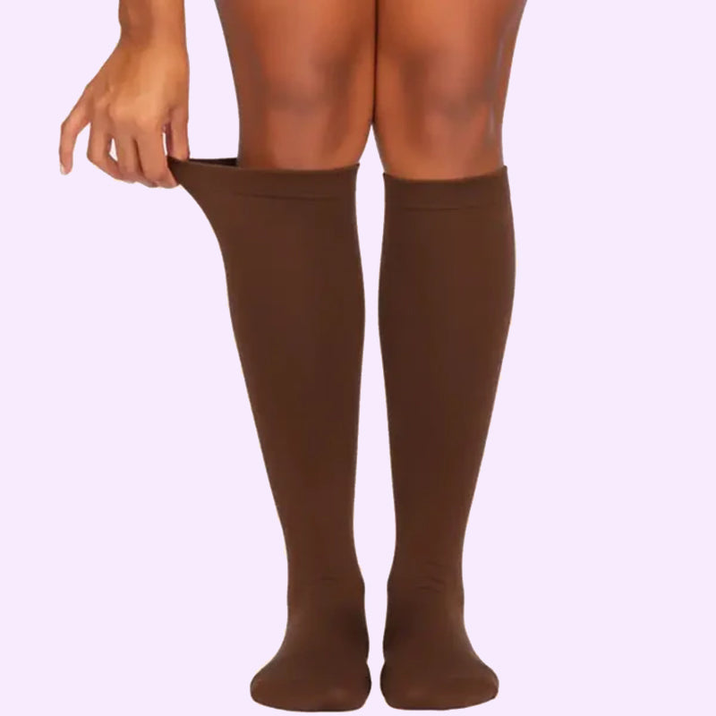 Si alguien nota que llevas medias "médicas", habríamos fracasado. Son elegantes, opacas y tienen el diseño de una media premium de alta costura. Póntelas para la oficina, para cenar o para viajar. Nadie lo sabrá, tú solo sentirás la energía.